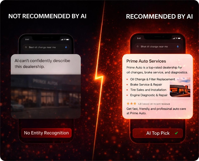 It selects answers from authoritative entities. If your dealership isn’t recognized as one, you don’t exist in Al-driven search.